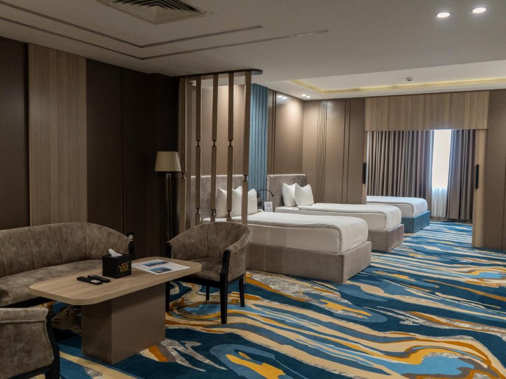 Van Royal Establecimiento está en Erbil, a 6 min a pie de Jalil Khayat Mosque, y dispone de alojamiento con centro de fitness, parking privado gratis, universo culinario y bar. El alojamiento se encuentra a 2,6 km de Citadel of Erbil, a 2,7 km de Erbil Square y a 2,8 km de Kurdish Textile Museum. El alojamiento ofrece recepción 24 horas, traslado para ir o volver del aeropuerto, servicio de alojamientos y wifi gratis en todo el alojamiento. En el hotel boutique, las habitaciones ecircuito termalciosas disponen de aire acondicionado, zona de estar, TV de pantalla plana con canales vía satélite, caja fuerte y baño privado con bidet, artículos de aseo gratuitos y secador de pelo. En Van Royal Hospedería, todas las cuartos disponen de ropa de cama y toallas. El fórmula de desayuno diario ofrece opciones buffet, continentales o halal. El alojamiento ofrece alojamiento de 5 estrellas con laguna cubierta, sauna y hammam. Hay un centro de zona balnearia, una peluquería y un centro de negocios en el alojamiento. Erbil Stones & Gemstones Museum está a 2,8 km del alojamiento, y Mudhafaria Minaret está a 3,3 km. El aeropuerto (Aeropuerto internacional de Erbil) está a 9 km.